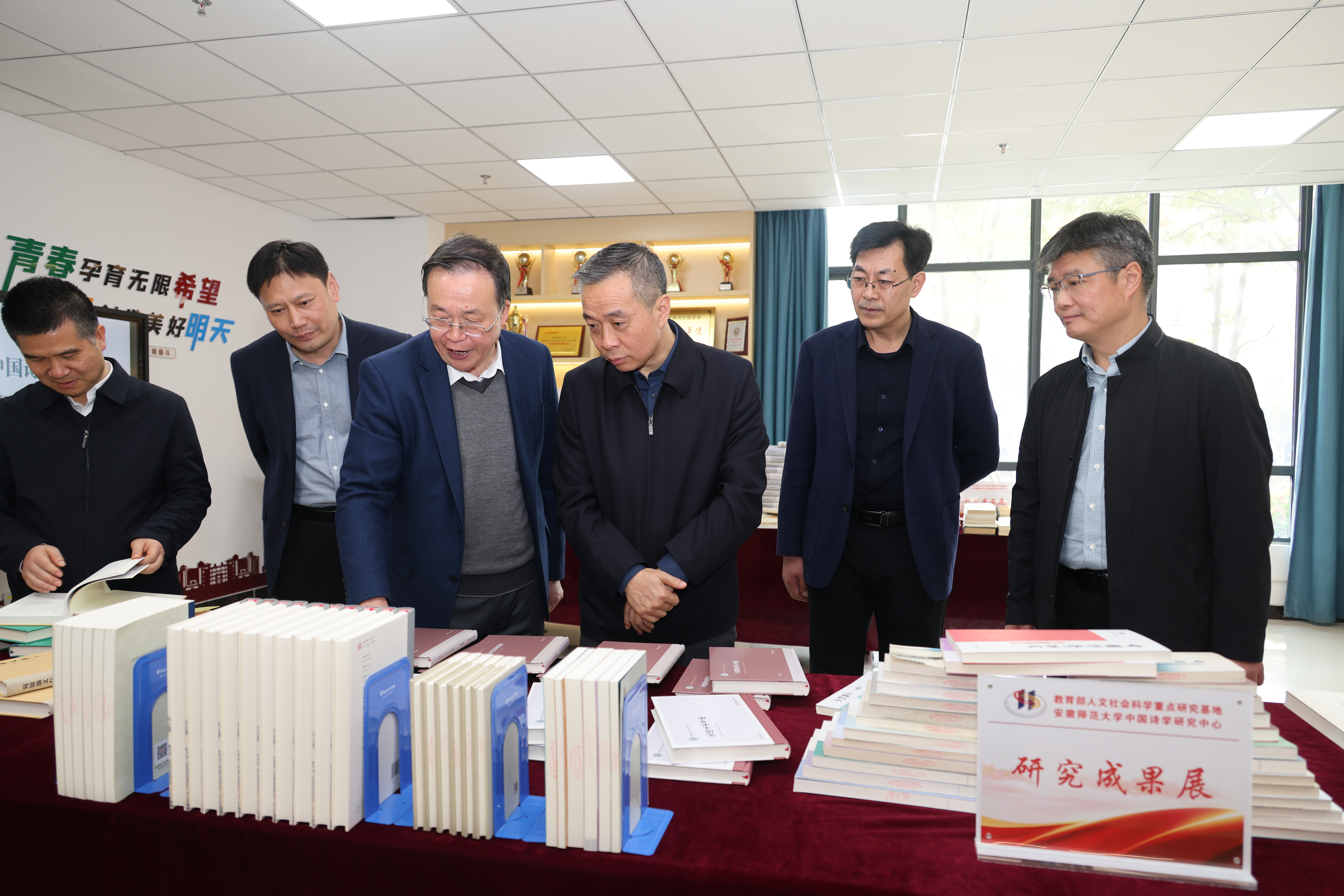 期间,与会人员参观了“京皖携手育英才 协同提质谱新篇”校地合作成果展示,详细了解京皖两地在师范教育协同、基础教育服务等领域的合作成效,并实地调研了中国诗学中心(文学院)。当天,还同步举办了基础教育质量监测座谈会、教育学类学科专业发展研讨会、花津大讲堂、教育评估评价学术报告会等系列活动,相关专家学者围绕学科专业发展、教育质量提升等主题开展交流研讨,为合肥中心未来发展与安徽基础教育提质贡献智慧。