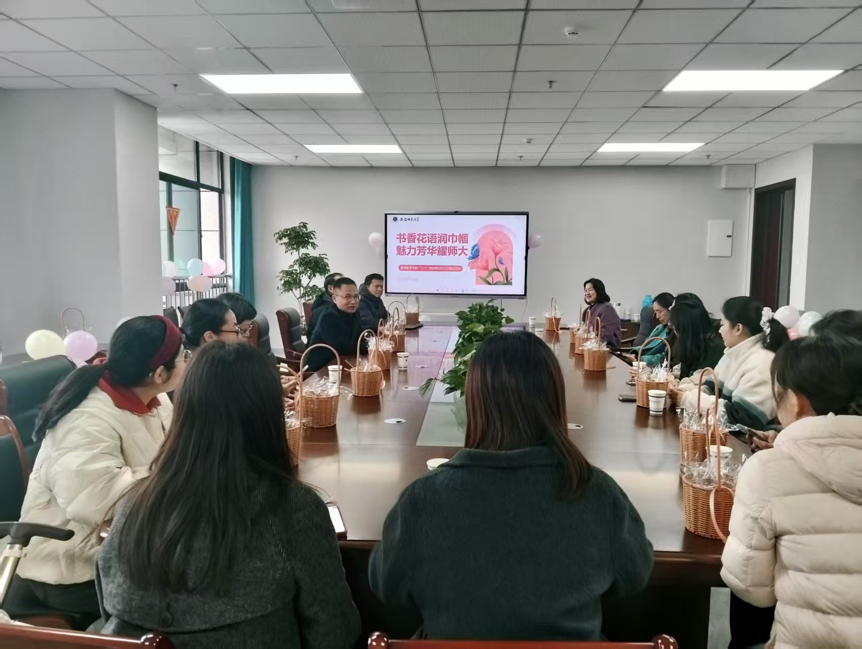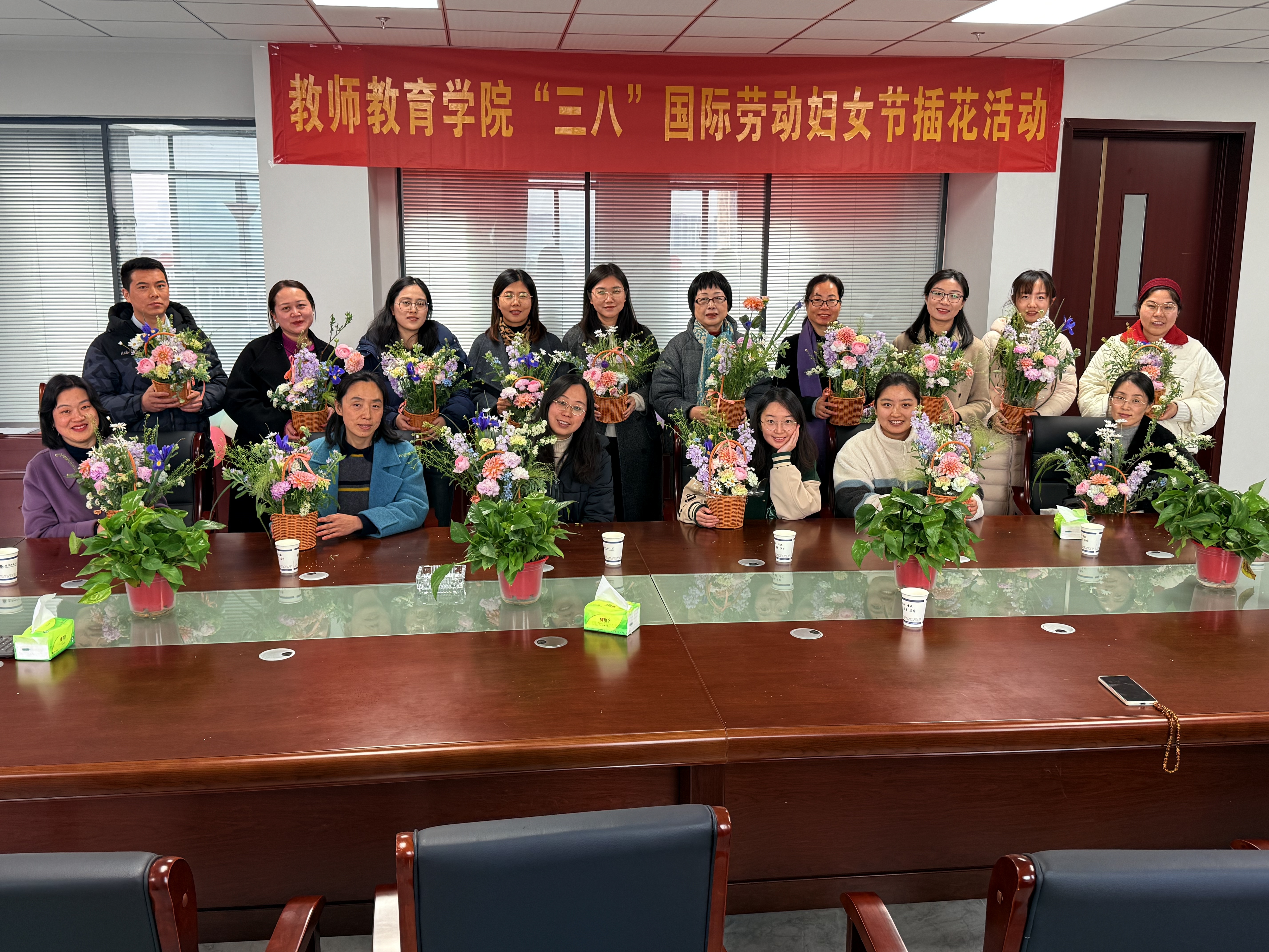 春晖拾趣,花香四溢。为庆祝第116个“三八”国际劳动妇女节,丰富女教职工的精神文化生活,3月6日下午,教师教育学院在第一会议室举办了以“书香花语润巾帼 魅力芳华耀师大”为主题的“三八”国际劳动妇女节插花活动。学院行政领导与全体女教职工欢聚一堂,共度美好节日。