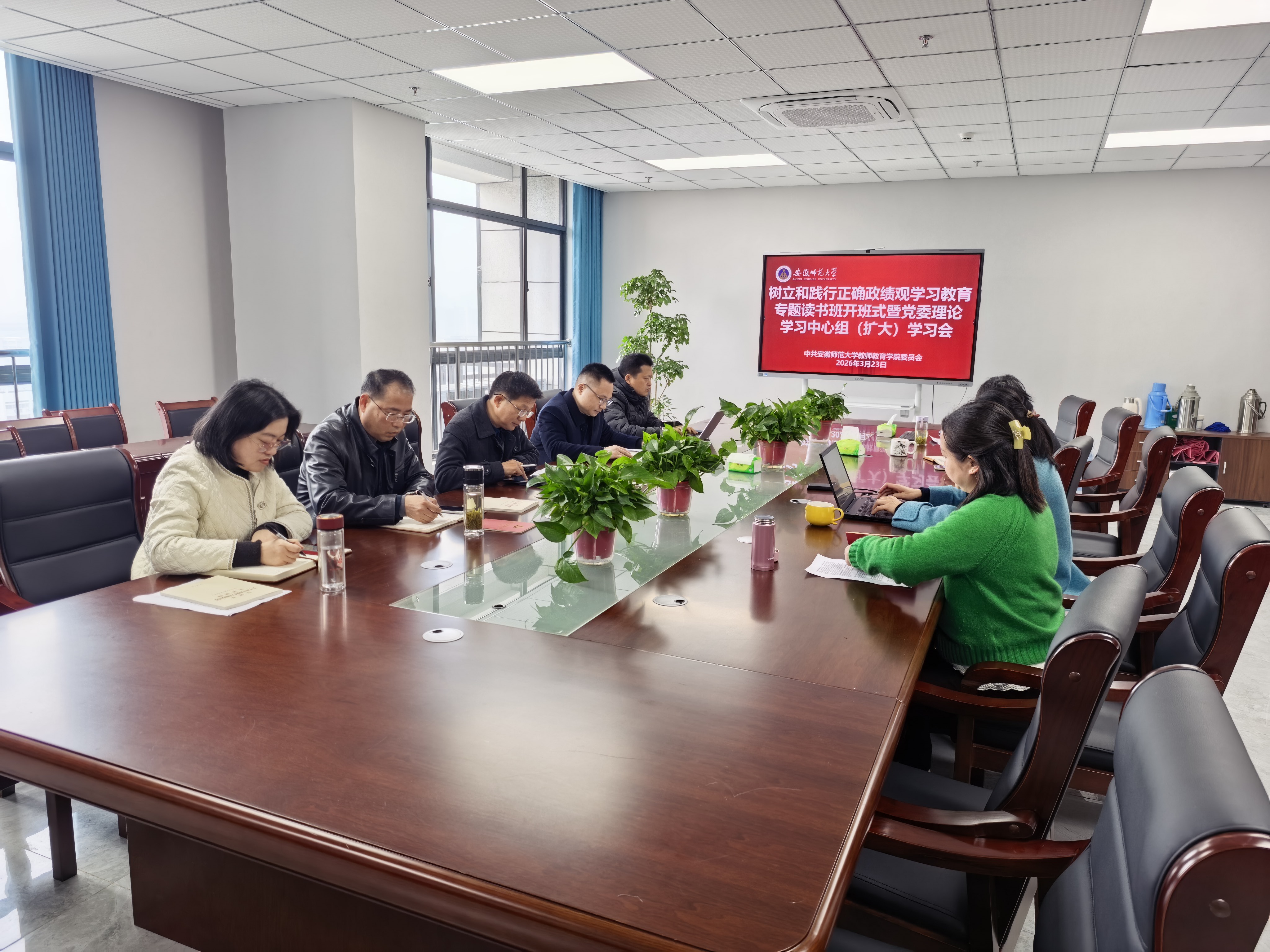 3月23日,教师教育学院党委举行树立和践行正确政绩观学习教育读书班开班式暨第一次专题学习研讨,深入学习习近平总书记关于树立和践行正确政绩观的重要论述等内容,传达学习上级有关会议文件要求,部署安排学院读书班学习计划。院党委副书记、执行院长何道江主持会议,学院党委委员、领导班子成员、科级干部代表参加会议。